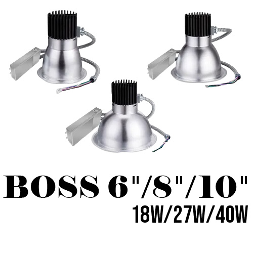 ALL LED 6"/8"/10" 18/27/40w 30/35/4000K Boss CCT & Watt Select Commercial Downlight